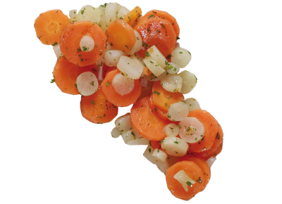 - Tagliare le verdure a rondelle e cuocere il tutto al vapore per circa 15 minuti.
