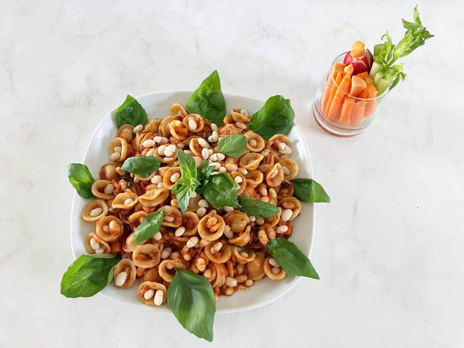 - Trasferire la pasta nella pentola di cottura (fuori dal fuoco), unire la salsa di pomodoro, i cannellini frullati e i cannellini interi. Mescolare bene. Se dovesse risultare troppo asciutta, aggiungere gradualmente un poco di acqua di cottura della pasta.